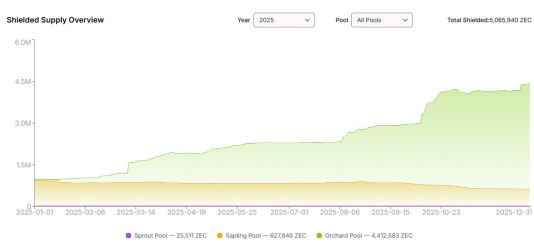 The amount of Zcash held in shielded addresses has risen, reflecting growing use of privacy-preserving transactions. Source: ZecHub